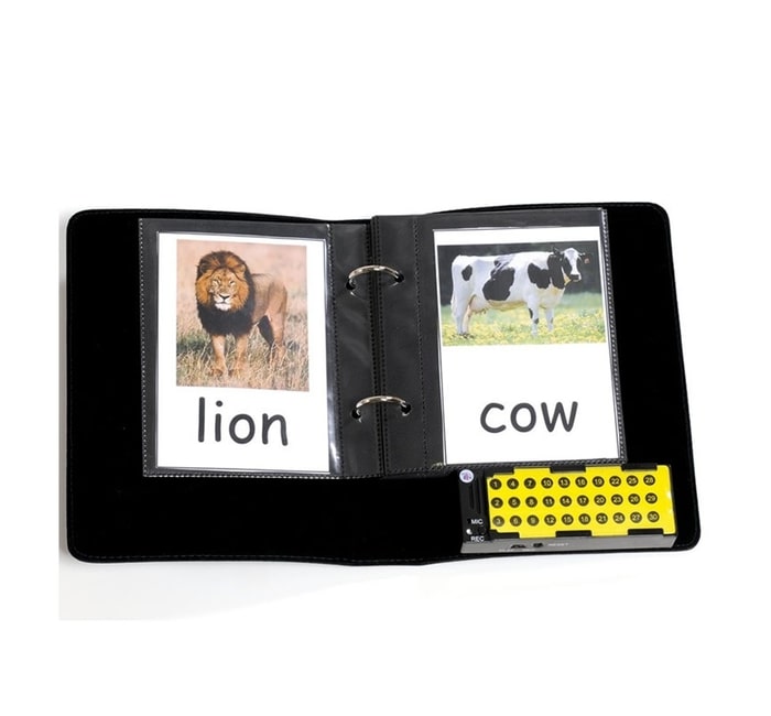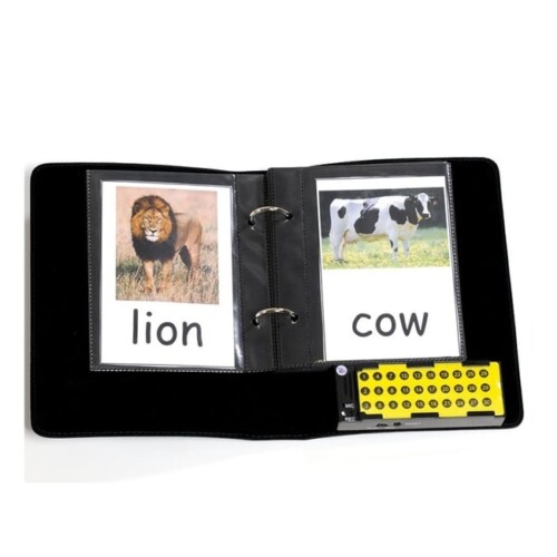Álbum onde pode colocar fotos, imagens ou símbolos em formato 10 x 15 cm. O Álbum de Comunicação A5 tem 15 páginas frente e verso para inserir, imagens ou fotos e 30 botões graváveis para 10 segundos de gravação.
