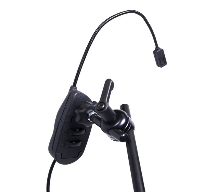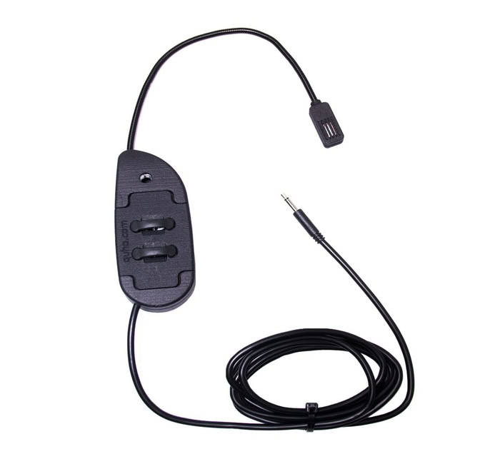 O Quha Vento é compatível com qualquer dispositivo com um conector de 3,5 mm. O manípulo é ativado com um simples sopro no microfone localizado na extremidade do braço sensor flexível.