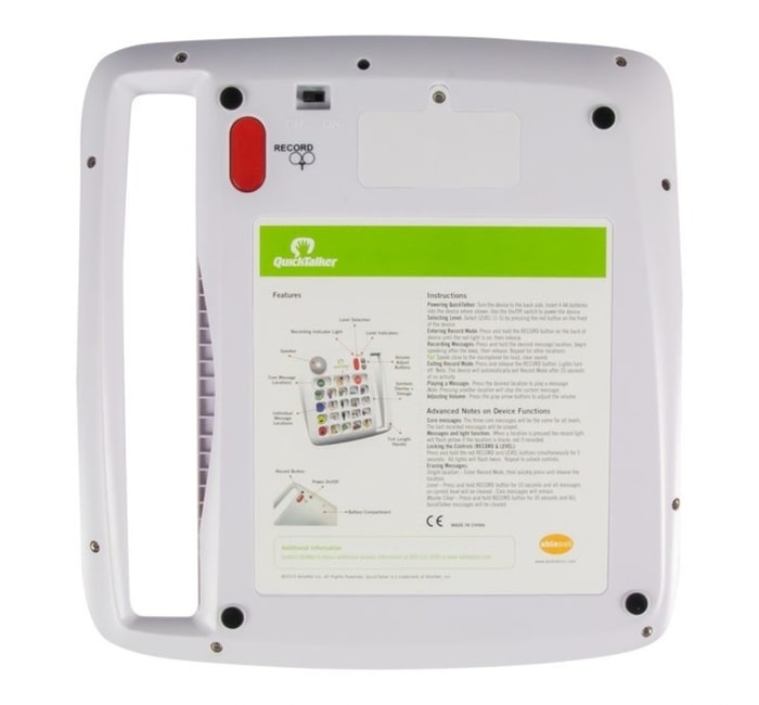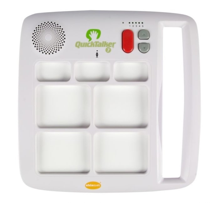 Fácil de usar. Leve a comunicação para qualquer lugar! Com o QuickTalker 7, os seus alunos estarão prontos para começar a comunicar em minutos. Inclui uma primeira linha de células para gravação, cujas mensagens não variam com a mudança de níveis. Estas células são úteis para gravar mensagens genéricas e úteis em diferentes contextos, por exemplo o nome da pessoa, mensagens de saudação e entre outras.