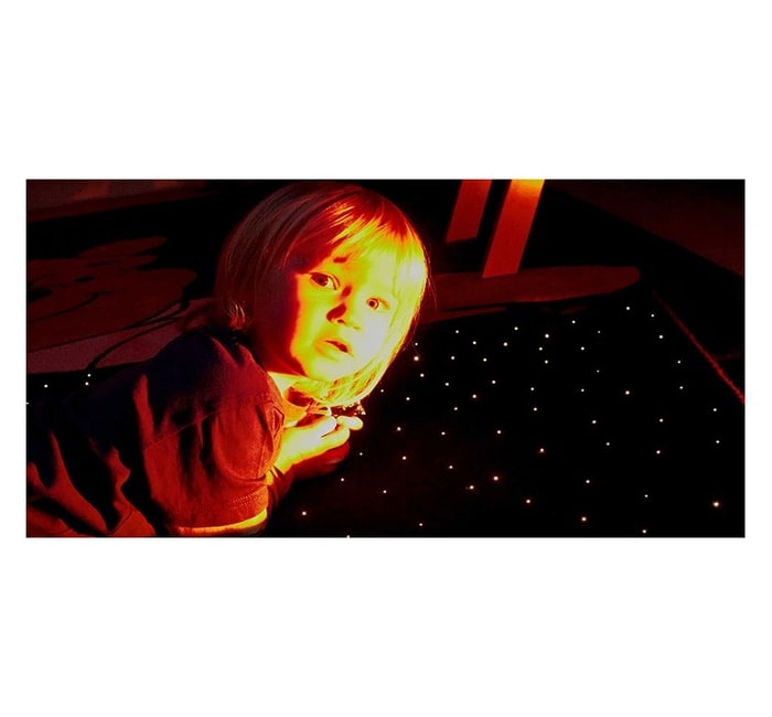 Tapete de fibra ótica que cria um efeito mágico com os seus tecidos brilhantes. Uma grande experiência visual e táctil.