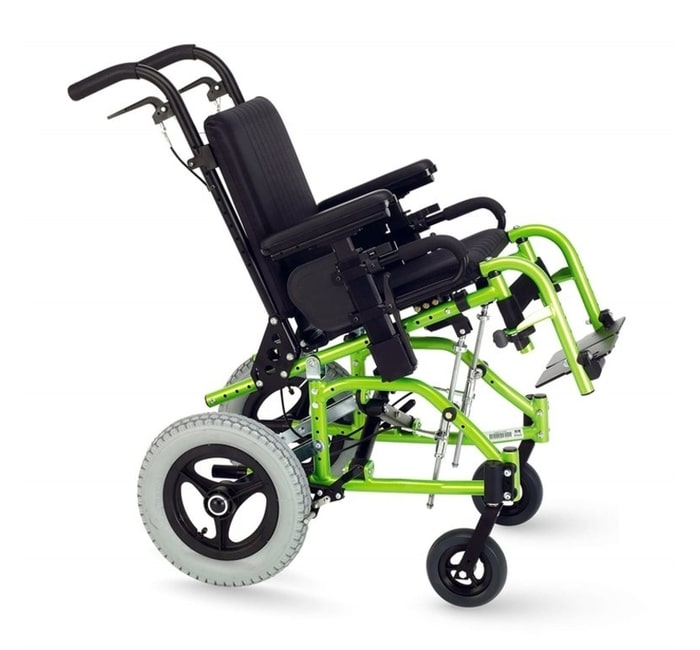 Zippie TS Dobrável permite até 45º de basculação. A basculação é fundamental para crianças que necessitam mudar de postura enquanto estão sentadas na cadeira, para conseguirem alívio da pressão ou favorecer a digestão. Além disso, pode-se selecionar a opção de basculação mediante pedal para eliminar os cabos.